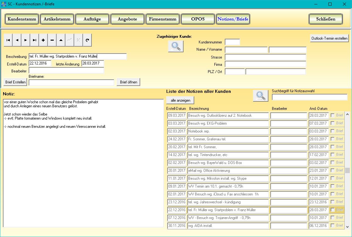 Hier werden die Notizen und Briefe für alle Kunden verwaltet.
